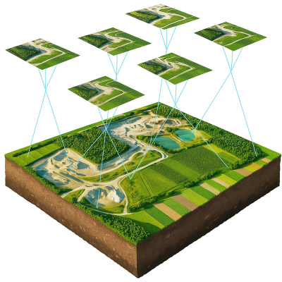 خرائط أورتوموزايك محددة الموقع جغرافيًا بدقة على مستوى السنتيمتر للتخطيط والتصميم والتوثيق.